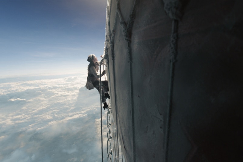 This was most challenging and creatively gratifying aspect of production for all concerned. The flight not only passes through different altitudes with light changes at different heights and at different times of day but with weather conditions (and even migrating butterflies) to contend with too. “All these factors came into play and we needed to help the audience believe that we’re entering clouds or a storm on the way up and on the descent,” explains colorist Simone Grattarola, another serial collaborator with Harper and Steel. “Our characters reach the top of the world where they are looking up to the stars with clouds far below them and, as they descend, they are going through snow and the harsh daylight transitions to dusk.”