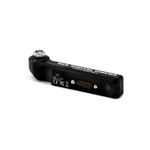 DSMC3™ Adapter A attaches to the top of the KOMODO-X™, the V-RAPTOR®, or the V-RAPTOR XL, and it provides a 16-Pin output that provides power, video, and control to the RED® Compact EVF and DSMC2® RED EVF (OLED).