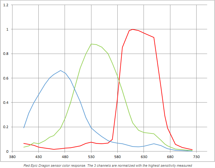 Spectral response: high sensitivity of the RED channel.