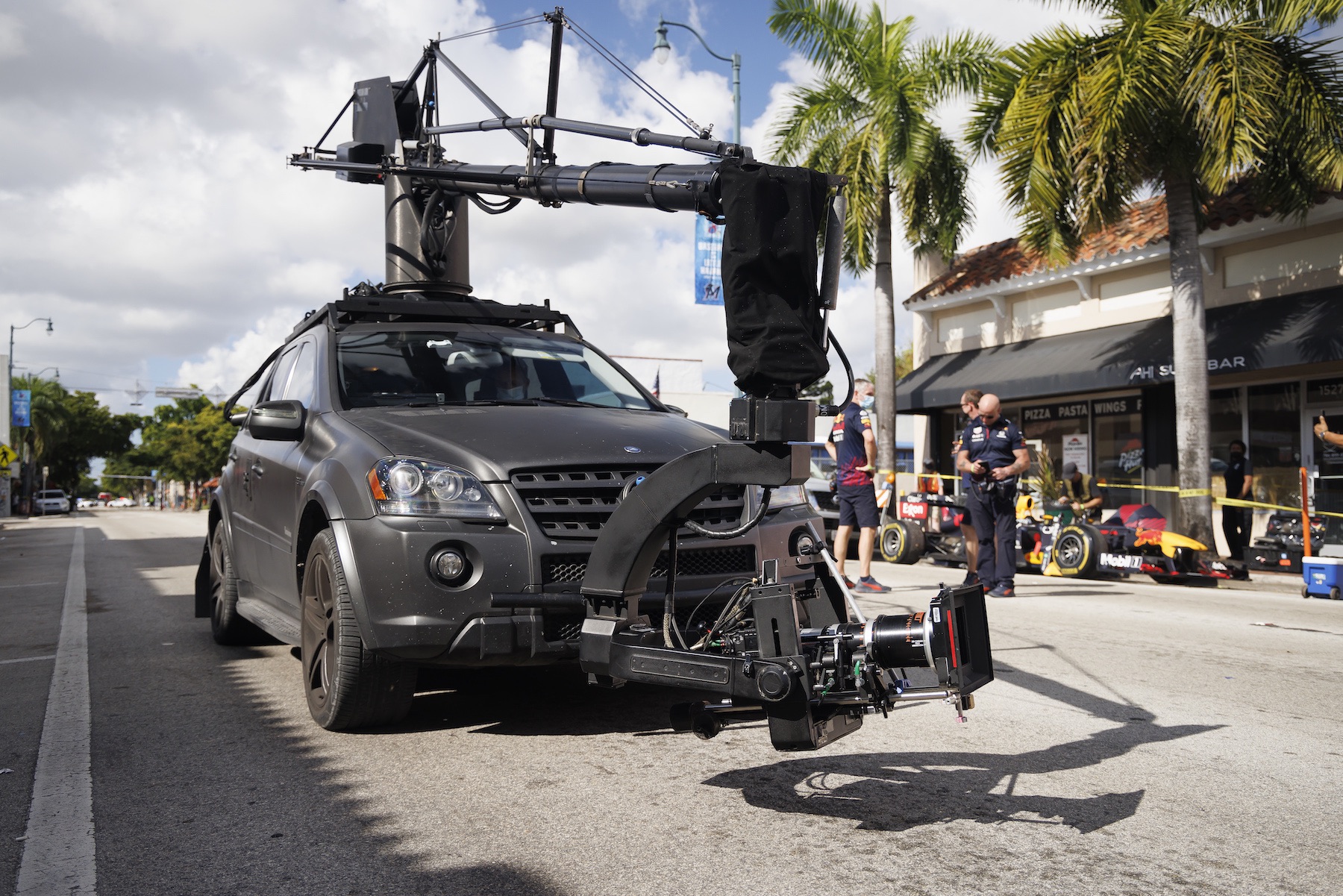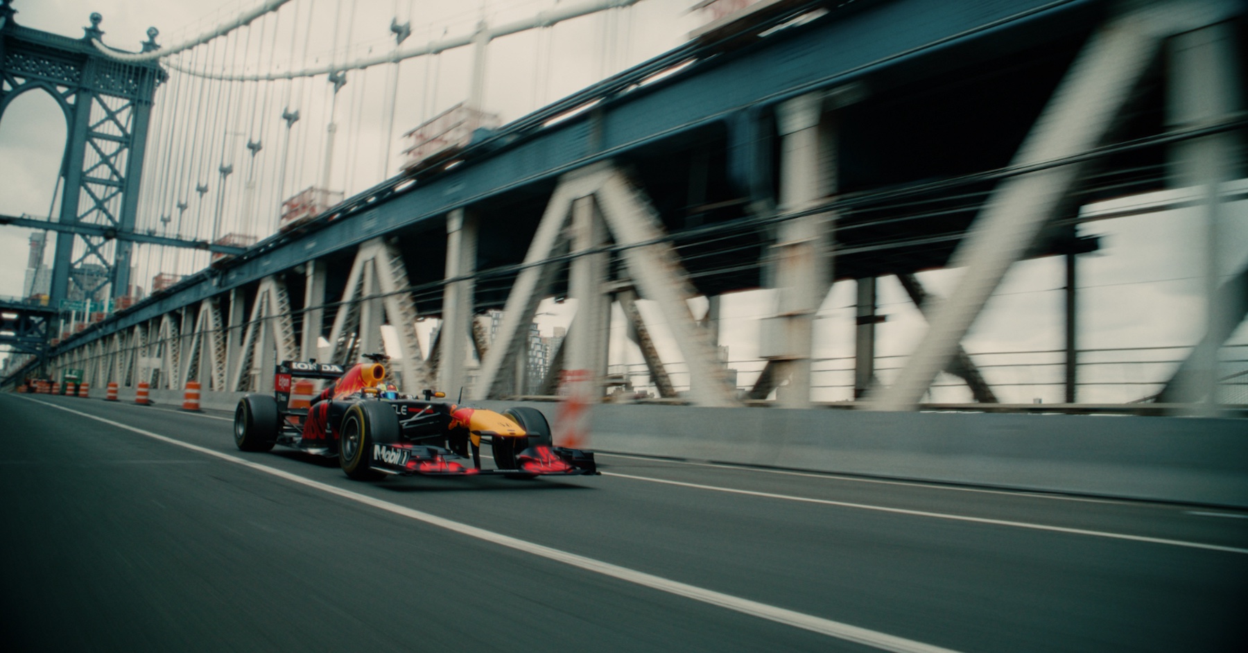 Schrunk and Director of Photography Will Roegge armed themselves with a combination of RED GEMINIs for a range of mobile cameras positioned throughout New York City. A RED KOMODO was mounted onboard the F1 car for action-cam shots, and a V-RAPTOR was the prime storytelling camera used for the main car-arm shots following the F1.