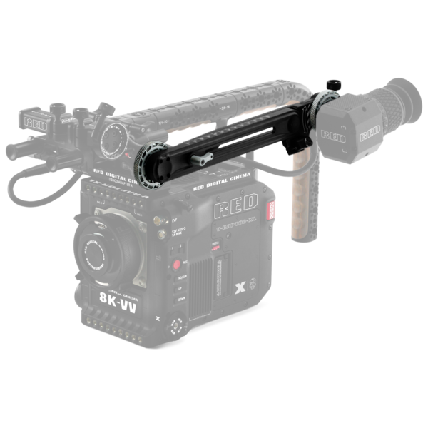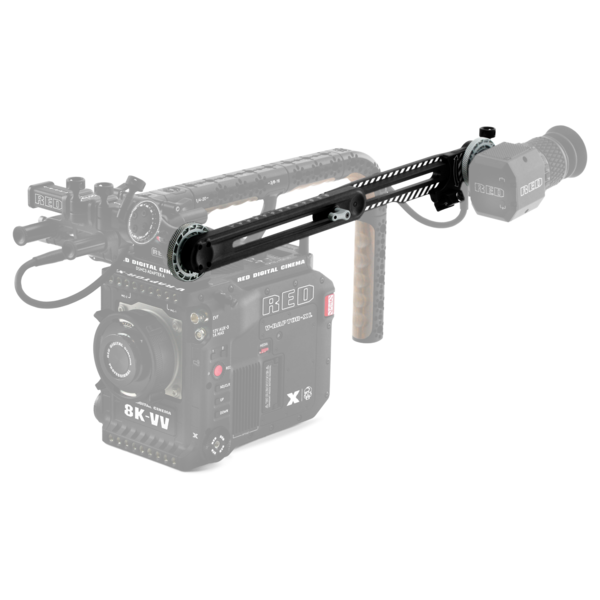 RED® designed the RED Extension Arm to seamlessly attach to the RED EVF Mount, and to provide a greater range of adjustability and configuration for the RED Compact EVF and DSMC2® RED EVF (OLED) when the operator is using the camera on tripods or dollies. The Extension Arm provides a range from 10 to 15 inches (25 to 37 cm) when fully extended, and it supports standard eyepiece levelers that use EL-3 style mounting.