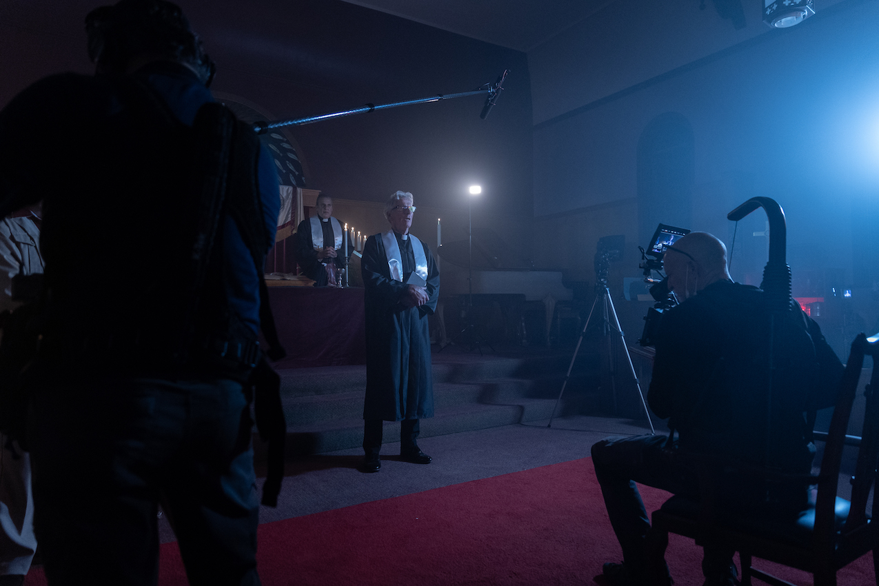 “This is a ripped-from-the-headlines true-crime tale of satanic possession, exorcism and murder but with different interpretations of the truth,” says cinematographer Brendan McGinty. “We’ve got disparate voices, documentary, b-roll of the actual location, dramatic reconstruction and archive, so the danger was we’d end up with a cacophony of visual styles. The combination of a large format RED sensor with a vintage LF lens choice gave us a strong look for this whole world.”